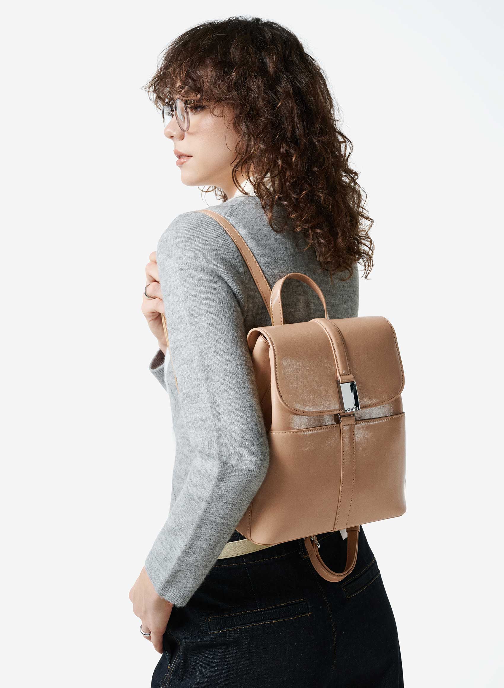 Balo nắp gập casual nhấn khóa trang trí - BAC 0236 - Màu nâu