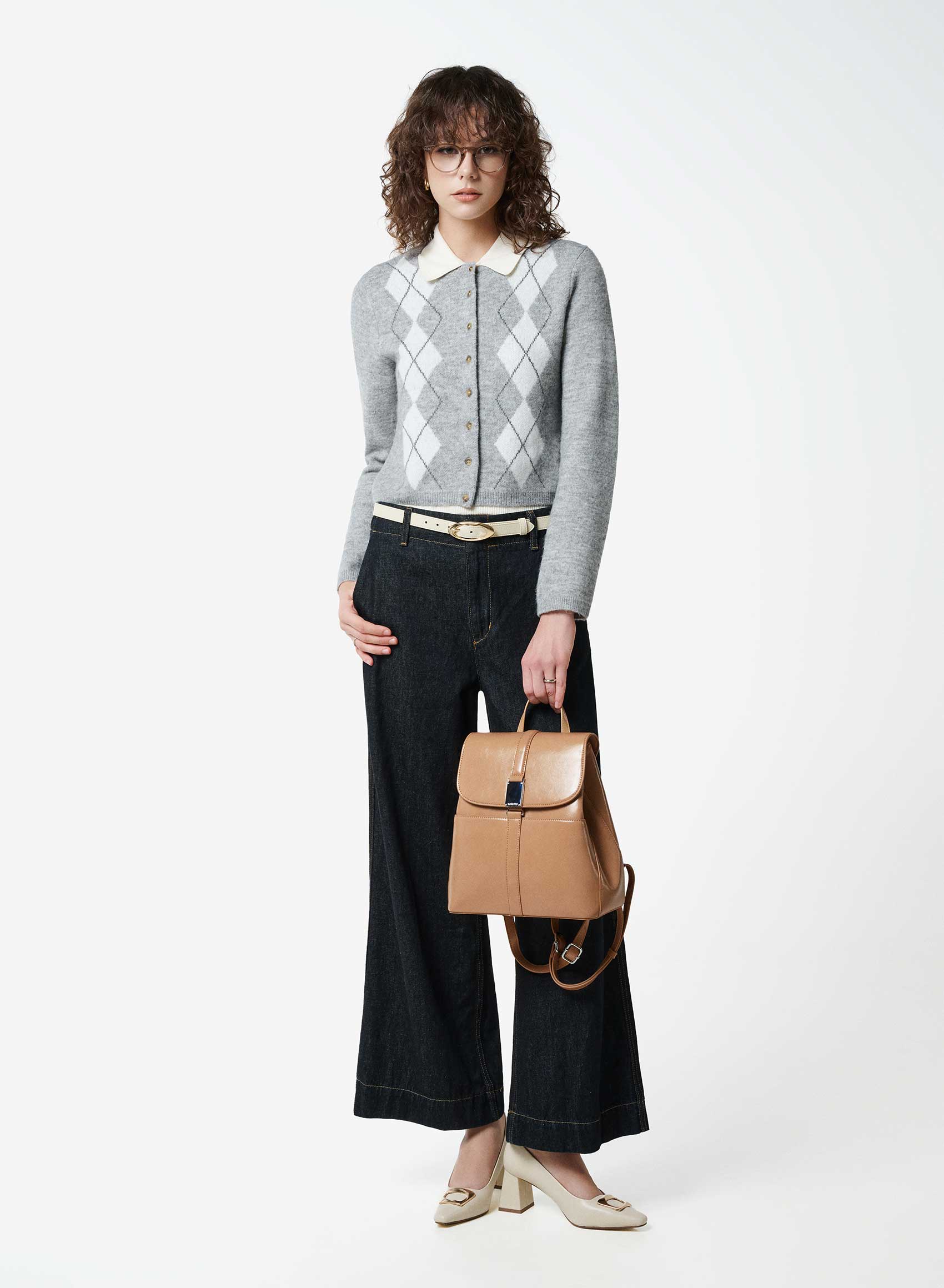 Balo nắp gập phối túi hộp tối giản - BAC 0231 - Màu kem