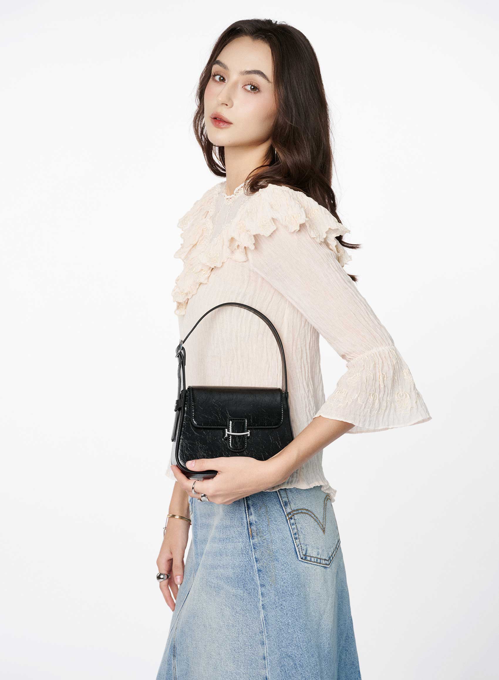 Túi baguette đeo vai nhấn khóa kéo - SHO 0294 - Màu đen