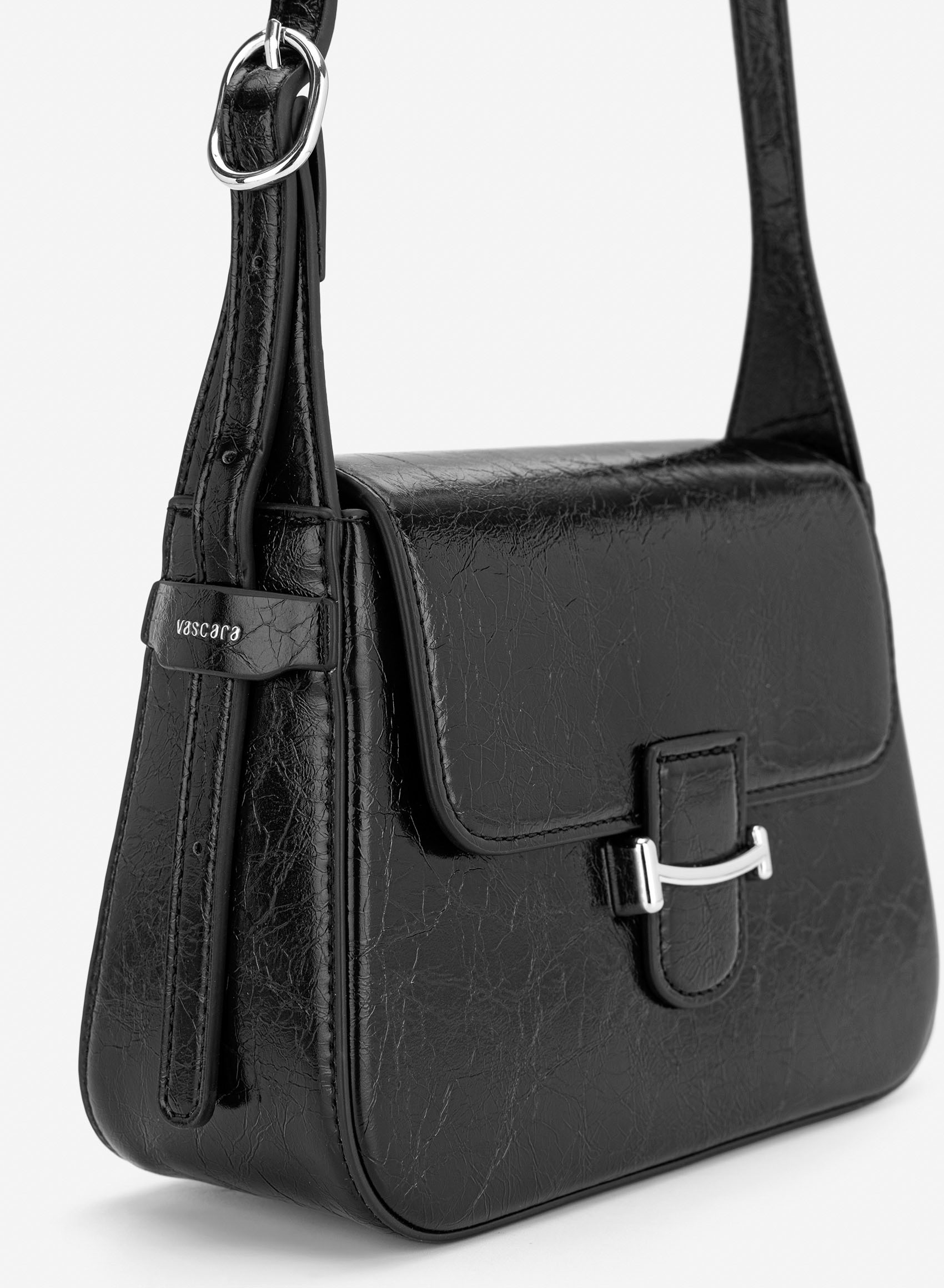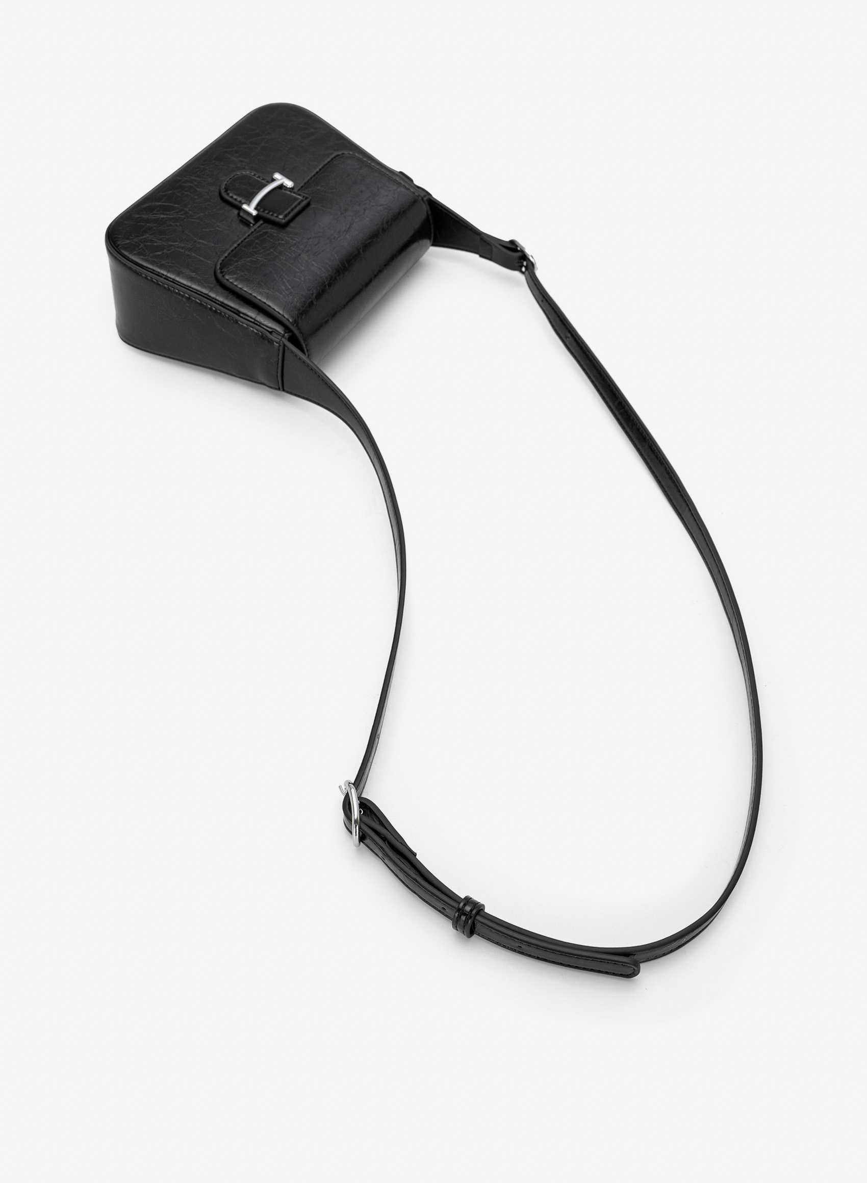 Túi leather nắp gập kiểu saddle - SHO 0296 - Màu đen