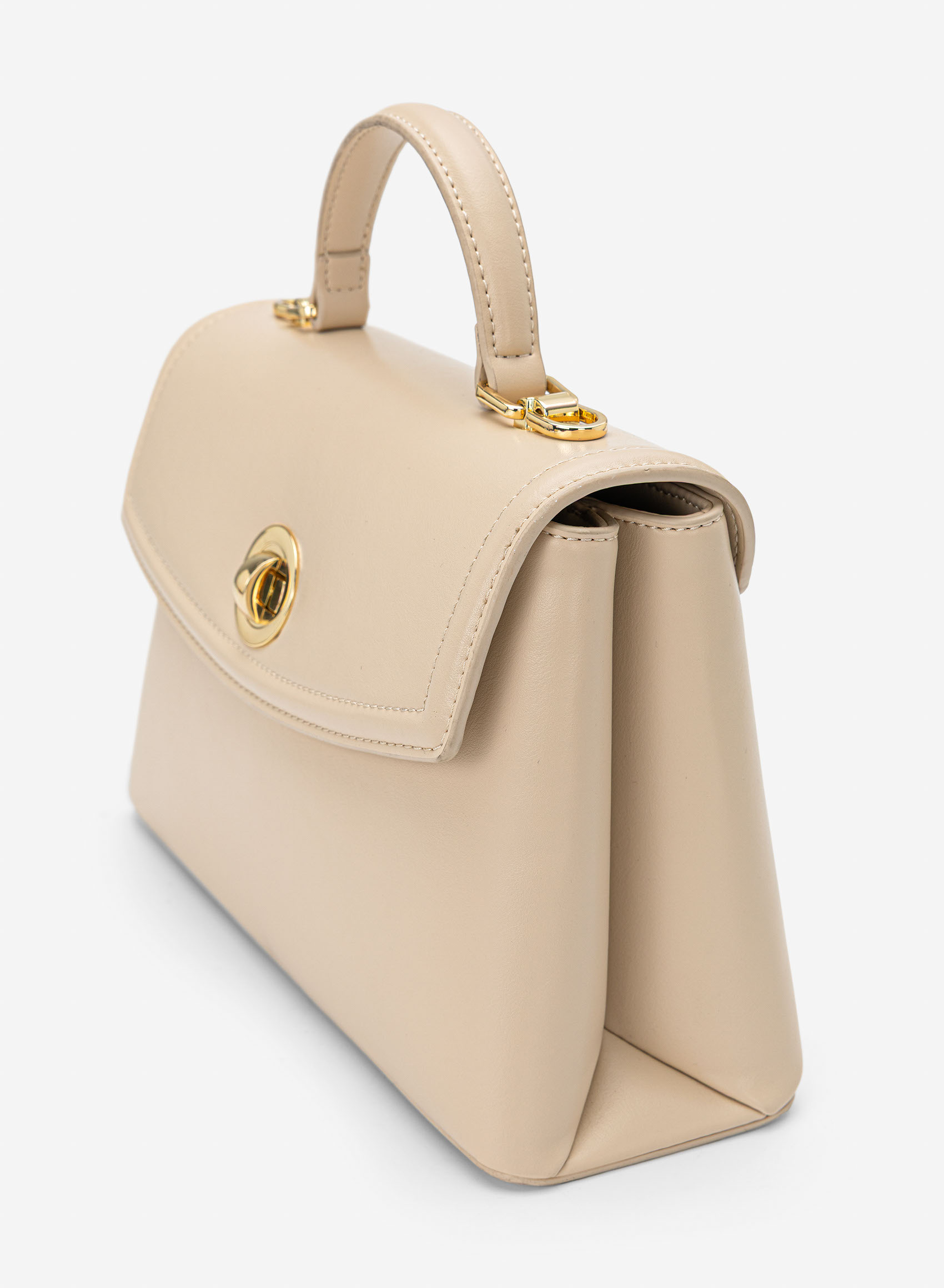 Túi xách tay nhấn nắp nổi viền - SAT 0345 - Màu be
